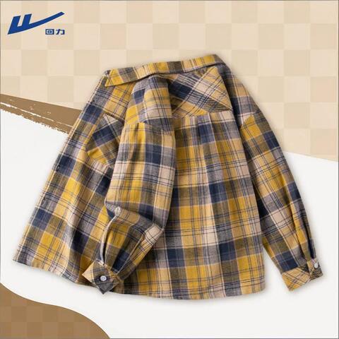 回力男童衬衫春秋款2026新款大童学院风长袖儿童秋装男孩格子外套