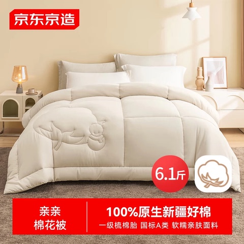 京东京造亲亲棉花被 100%新疆一级棉胎填充A类秋冬厚被子被芯