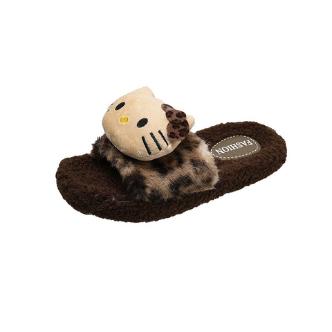 KT猫外穿女羊毛绒卡通可爱外穿拖鞋防滑软底懒人一脚蹬一字拖时尚