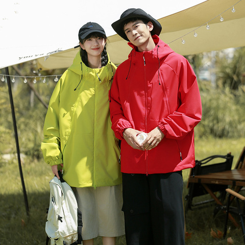 BUFFALO BOUN户外休闲风连帽撞色冲锋衣男女情侣款宽松运动外套