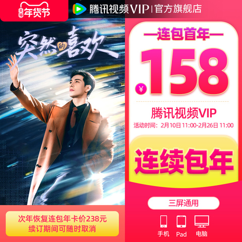 【2月10日抢首年158元】腾讯视频VIP会员年卡不支持电视端1年费