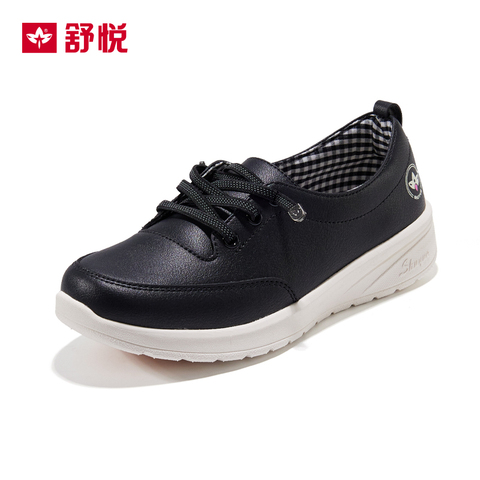 舒悦妈妈鞋软底软面舒适小皮鞋