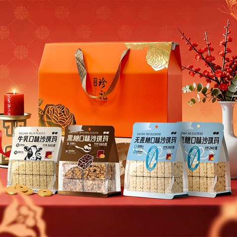 精益珍沙琪玛珍年货礼盒零食牛乳味黑糖味无蔗糖早餐下午茶代餐