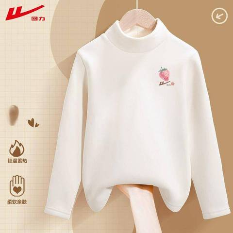 回力女童白色打底衫内搭半高领2025新款大童加绒儿童秋长袖上衣女