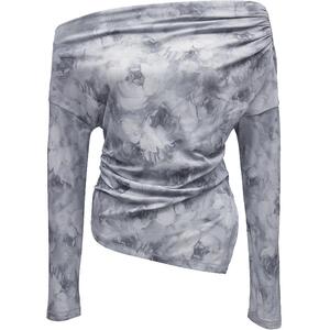 ONLY扎染一字肩修身长袖T恤