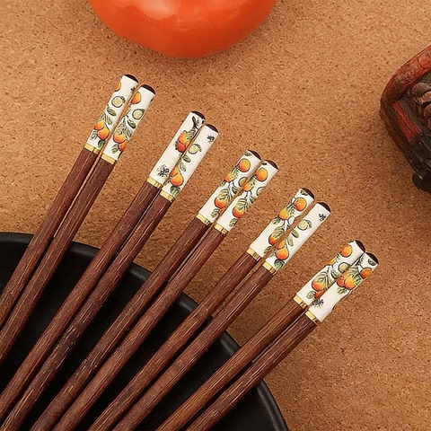 柿柿如意筷子家用筷子餐具精选竹筷子防滑10双装红木筷子防霉筷子