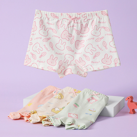 芬腾可安儿童内裤纯棉平角底裤女童卡通女宝宝A类抗菌不夹屁屁