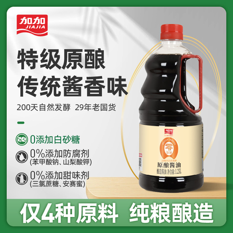 加加零添加原酿酱油1.25L200天自然发酵特级生抽黄豆酿造调味料a2