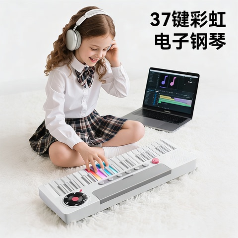 女孩电子琴玩具初学者乐器8儿童37键彩虹多功能钢琴灯光音乐3-6岁