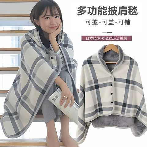 多功能披肩毛毯单人办公室午睡小毯子学生午休两用盖腿加厚披风毯