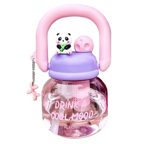 可爱双饮大肚水杯带吸管手提水壶学生便携夏天大容量塑料杯子超萌