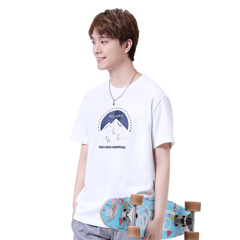 R.Q.G夏季新款男士短袖t恤宽松学生青少年白色上衣纯棉潮流体恤衫