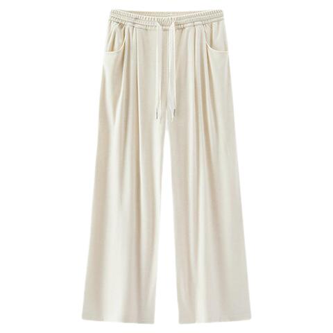 森马垂坠感打褶蕾丝阔腿休闲裤女