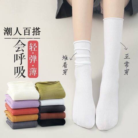 韩版天鹅绒袜子女中筒袜薄款堆堆袜纯色糖果色女士冰冰袜
