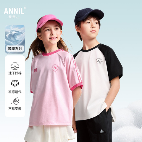 【凉感棉速干T】安奈儿童装男女童短袖T恤2025夏吸湿透气纯棉上衣