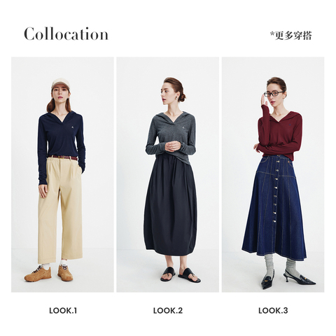 Navigare高弹连帽V领长袖T恤