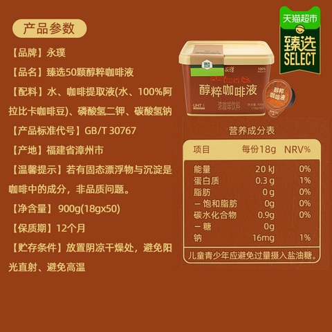 臻选永璞醇粹咖啡液0糖0脂拿铁