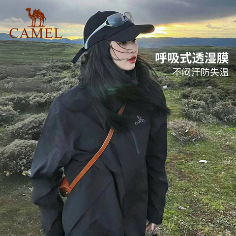 [王俊凯同款]骆驼户外王者凯甲冲锋衣女单冲外套男防风防水登山服