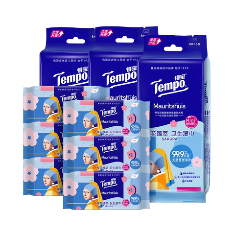 得宝戴珍珠耳环的少女湿巾8片18小包/新年限定款手帕纸7片36包K