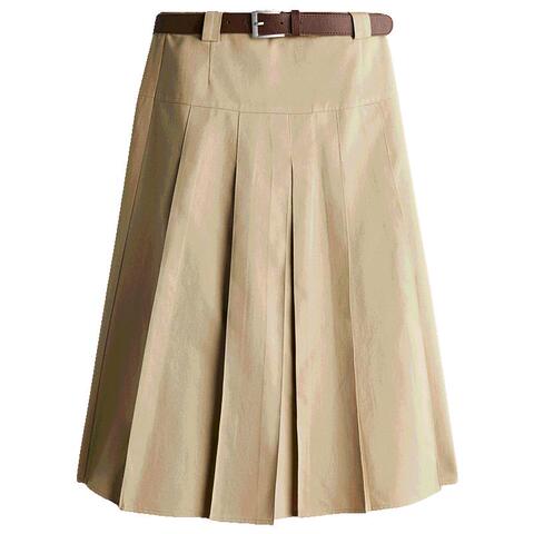HM女装半身裙春季学院风中长款气质欧若风含腰带A字百褶裙1286177