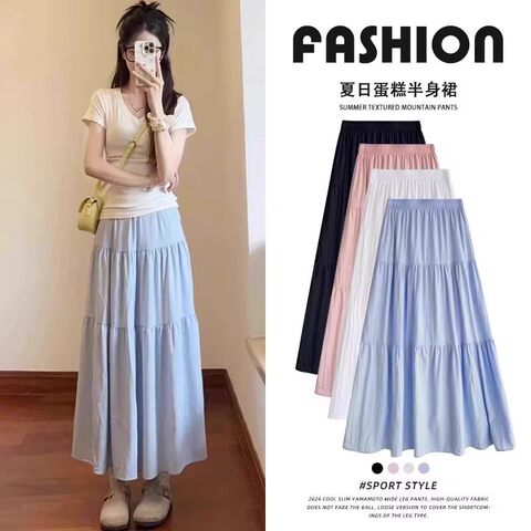 仙女蛋糕裙女夏季2025新款高腰a字气质温柔芭蕾风中长款半身裙子x