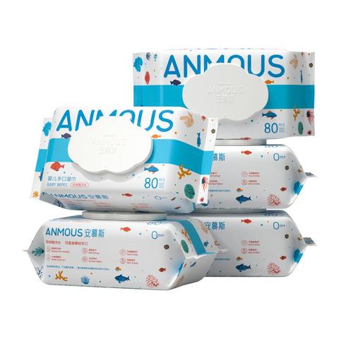安慕斯婴儿手口湿巾家用80抽5包