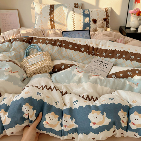 ins风卡通水洗棉四件套超柔软印花床笠款学生公寓宿舍三件套