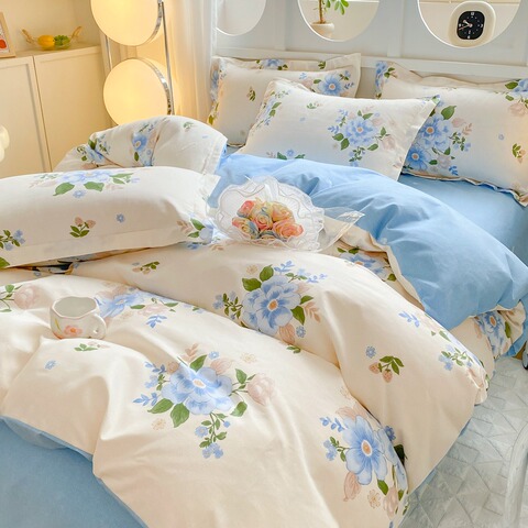 洛颜小清新亲肤磨毛四件套简约加厚亲肤床单被套学生三件套