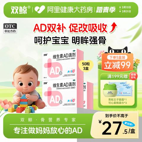 【自营】【双鲸】维生素AD滴剂(胶囊型)500IU1500IU*50粒/盒