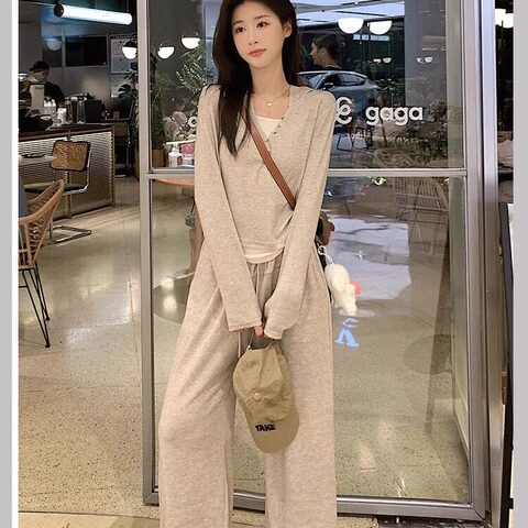 2026春款套装两件套长袖女运动休闲通勤慵懒时尚百搭阔腿裤套装yz