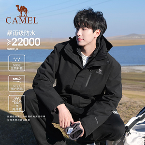 骆驼户外紫玫红色冲锋衣女暴雨防水防风外套男三合一可拆卸登山服