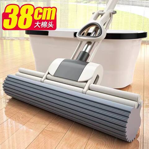 拖把海绵拖把家用滚轮式挤水免手洗胶棉拖把大号拖地吸水轻便一拖