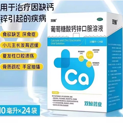 婴幼儿童助长高双鲸葡萄糖酸钙锌口服溶液赖氨酸非铁液体钙厌食