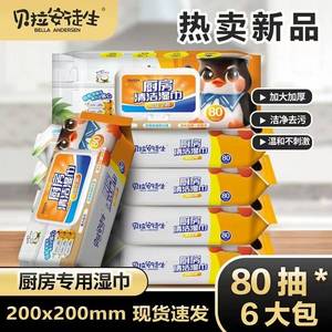 6大包*80抽贝拉安徒生威猛企鹅巨无霸厨房专用湿巾去油去污清洁纸