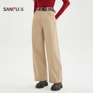 券后价:¥79.9三福牛仔裤女2026新款春季时尚弯刀裤宽松卡其色长裤子女装515777