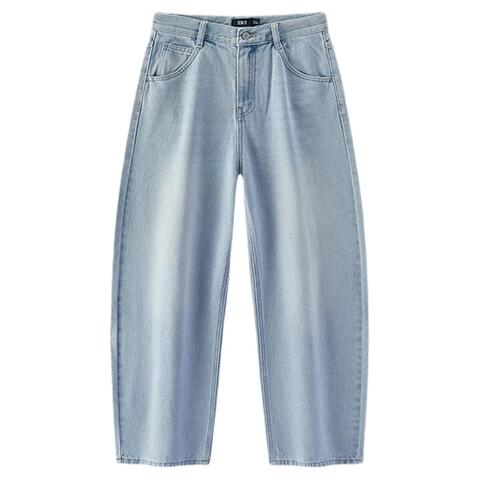 森马含莱赛尔宽松弯刀牛仔裤女