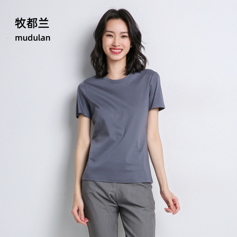 牧都兰纯棉T恤女新款夏季半袖休闲简约正肩收腰基础修身显瘦短袖