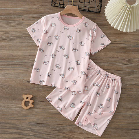 夏季天丝男女童短袖睡衣套装