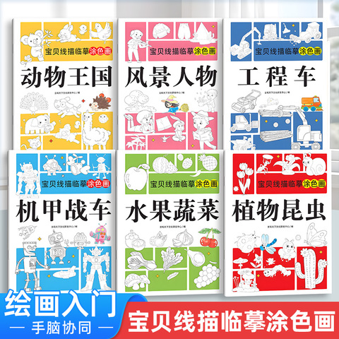 宝贝线描临摹:植物昆虫 儿童线描临摹画册简笔画卡通机甲手绘绘画线稿描线控笔涂鸦涂色本0-6岁宝宝涂色绘画书