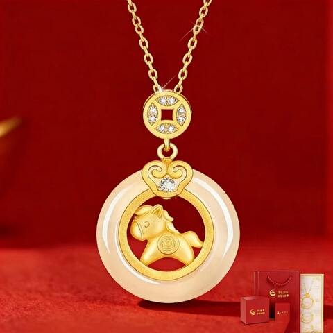 珍尚银S925小马平安扣和田玉项链
