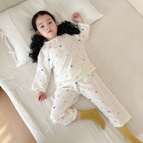 儿童睡衣春夏季家居服套装休闲韩版九分袖男童女童半袖长袖空调服