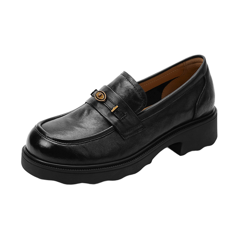 哈森羊皮乐福鞋经典皱面厚底皮鞋学院风女鞋2026新款HWS260116