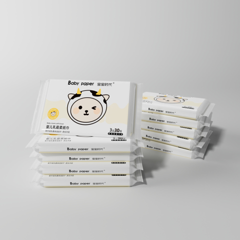宝宝时代Babypaper母婴适用云柔巾保湿型婴儿乳霜纸30抽*5包YX2