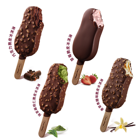 【冷链到家】哈根达斯冰淇淋脆皮条10支装经典巧克力草莓多种雪糕