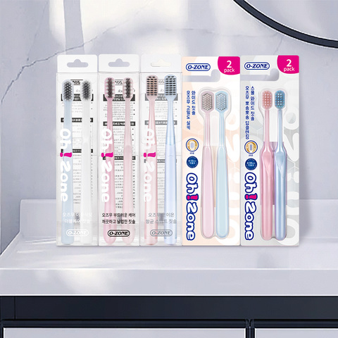 【自营】欧志姆纤柔宽头洁净护龈牙刷成人家庭极简尖头家用2支装