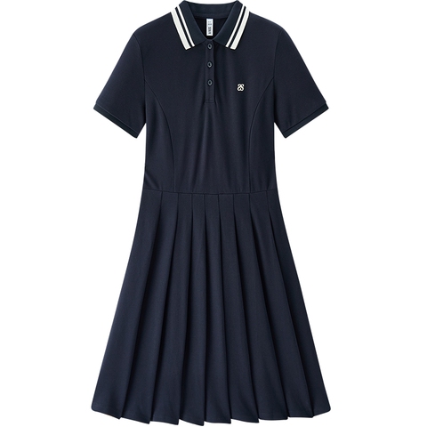 森马学院风polo领百褶连衣裙女