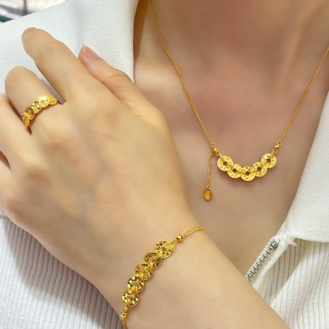 五帝钱币流苏s925银项链女新中式古法金色碎碎冰吊坠锁骨链