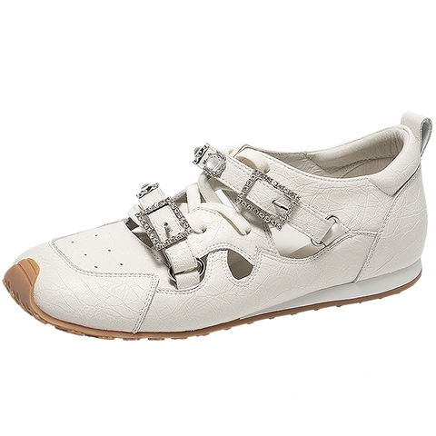 MIO米奥芭蕾运动玛丽珍2026春新款闪钻绑带女阿甘舞鞋裂纹皮单鞋
