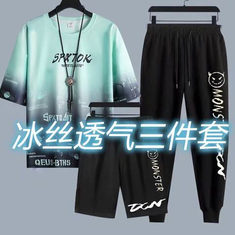 短袖T恤男夏季套装男装搭配帅气青少年初中高中学生冰丝体恤3件套