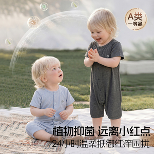 婴儿短袖连体衣春夏季薄款A类男童女童透气纯色宝宝哈衣居家爬服